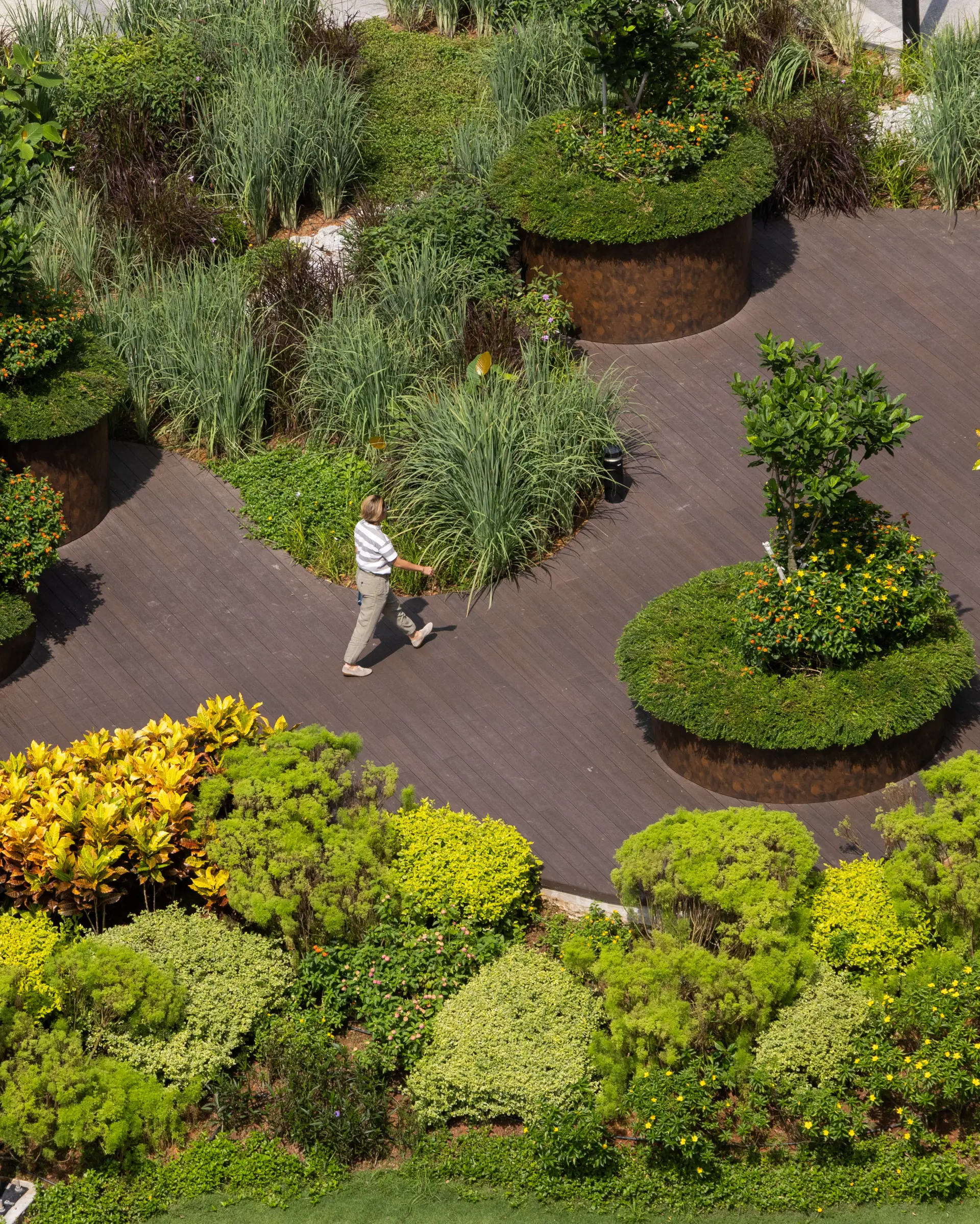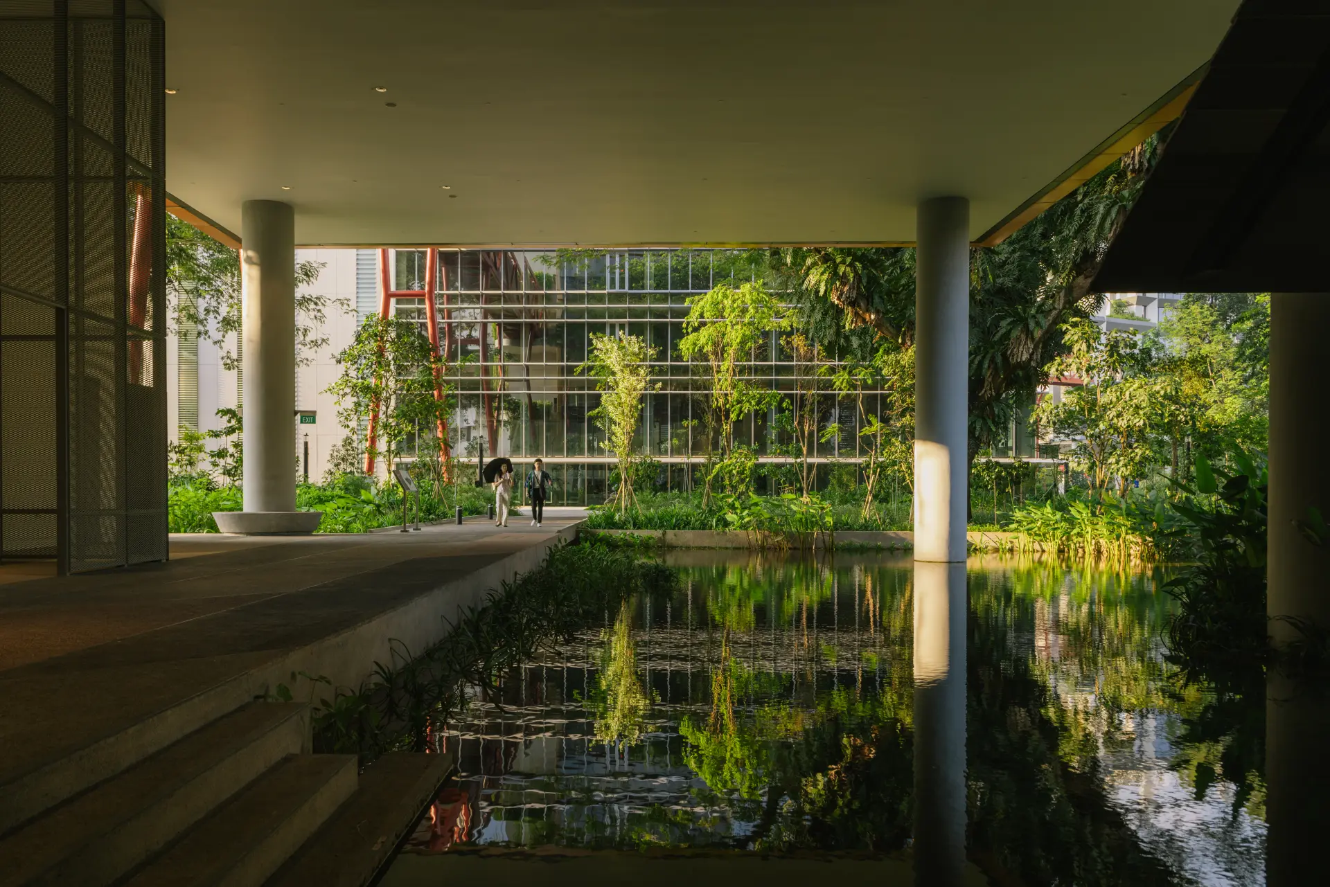 In Singapore, greenery lost to construction must be replaced through Landscape Replacement Areas (LRA), as defined by the Urban Redevelopment Authority (URA). The framework expands the idea of landscape to include not only planting but also water features, sky terraces, and hardscape plazas. At the campus, 100% of the displaced greenery has been reinstated as LRA, including green roofs, ecological ponds, and sky gardens. These features enhance biodiversity, protect existing habitats, and contribute to a welcoming campus environment.