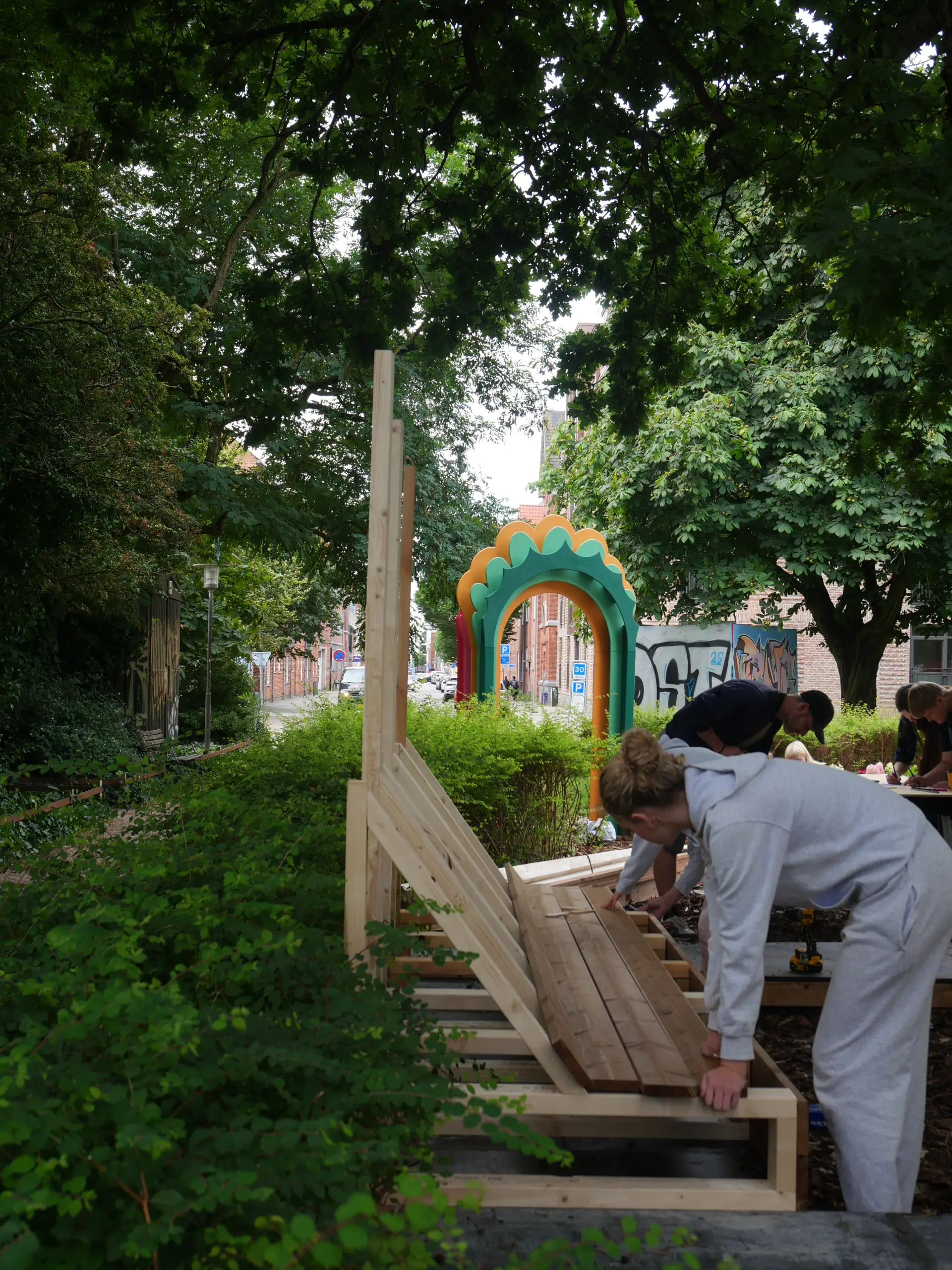 Now we have opened a new public space co-created with over 50 teenage girls in Esbjerg. Located next to the city’s youth culture house, the communal outdoor garden is alive with personality that is uniquely their own – colorful handmade art and sculptures bring the girls’ creativity to life.