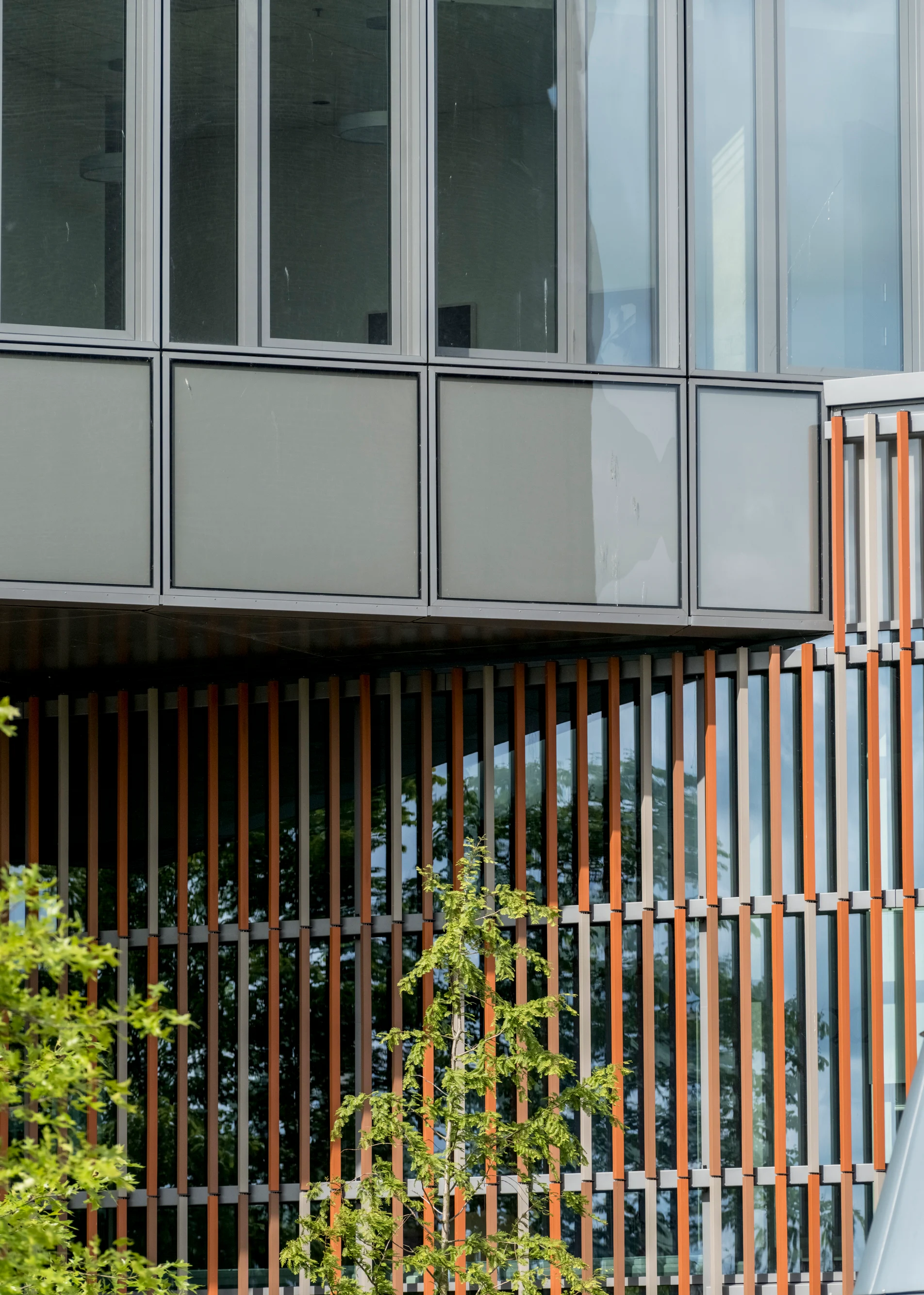 Steel and wood were chosen as materials, reflecting the balance between the clinical precision that medical research demands, and human warmth that learning requires.