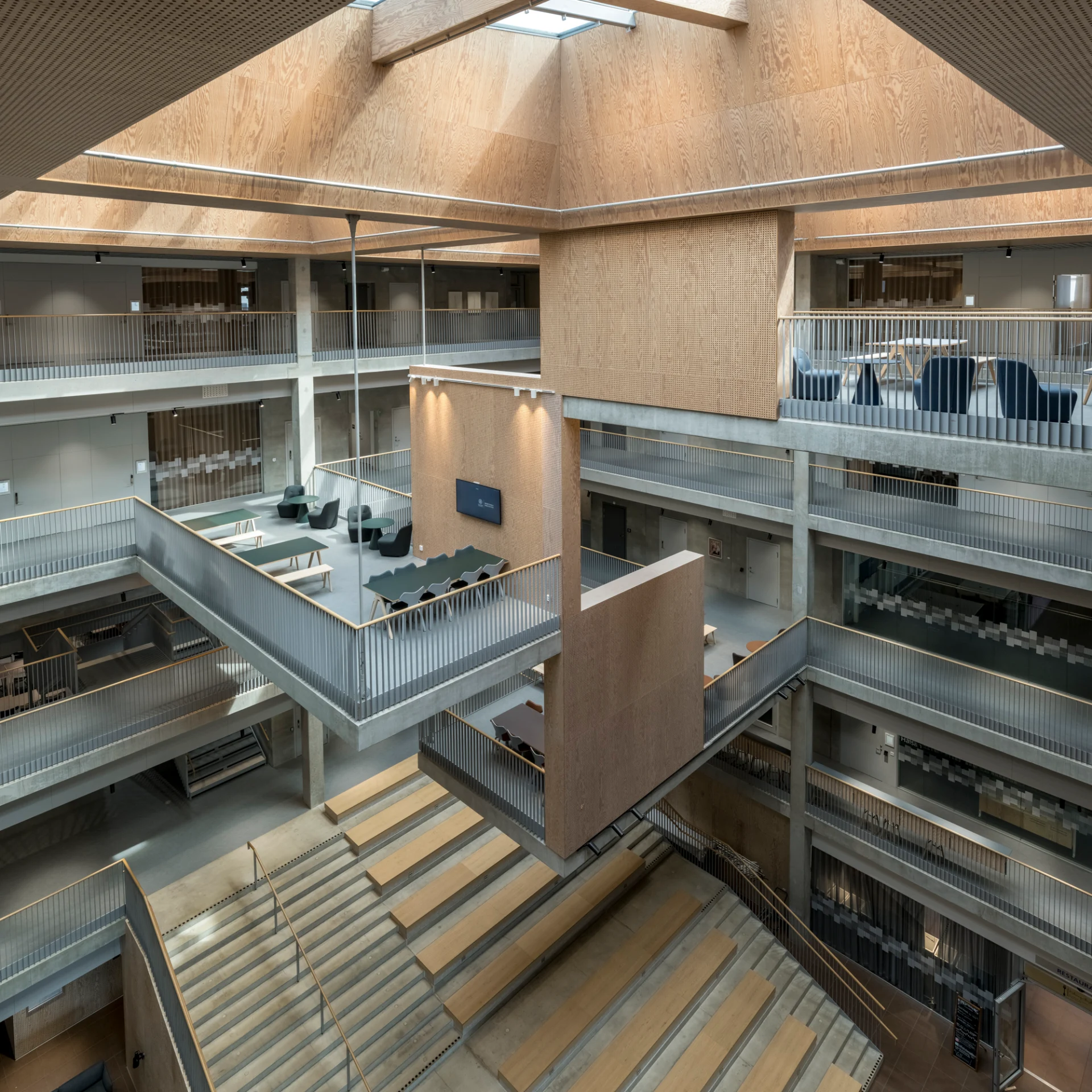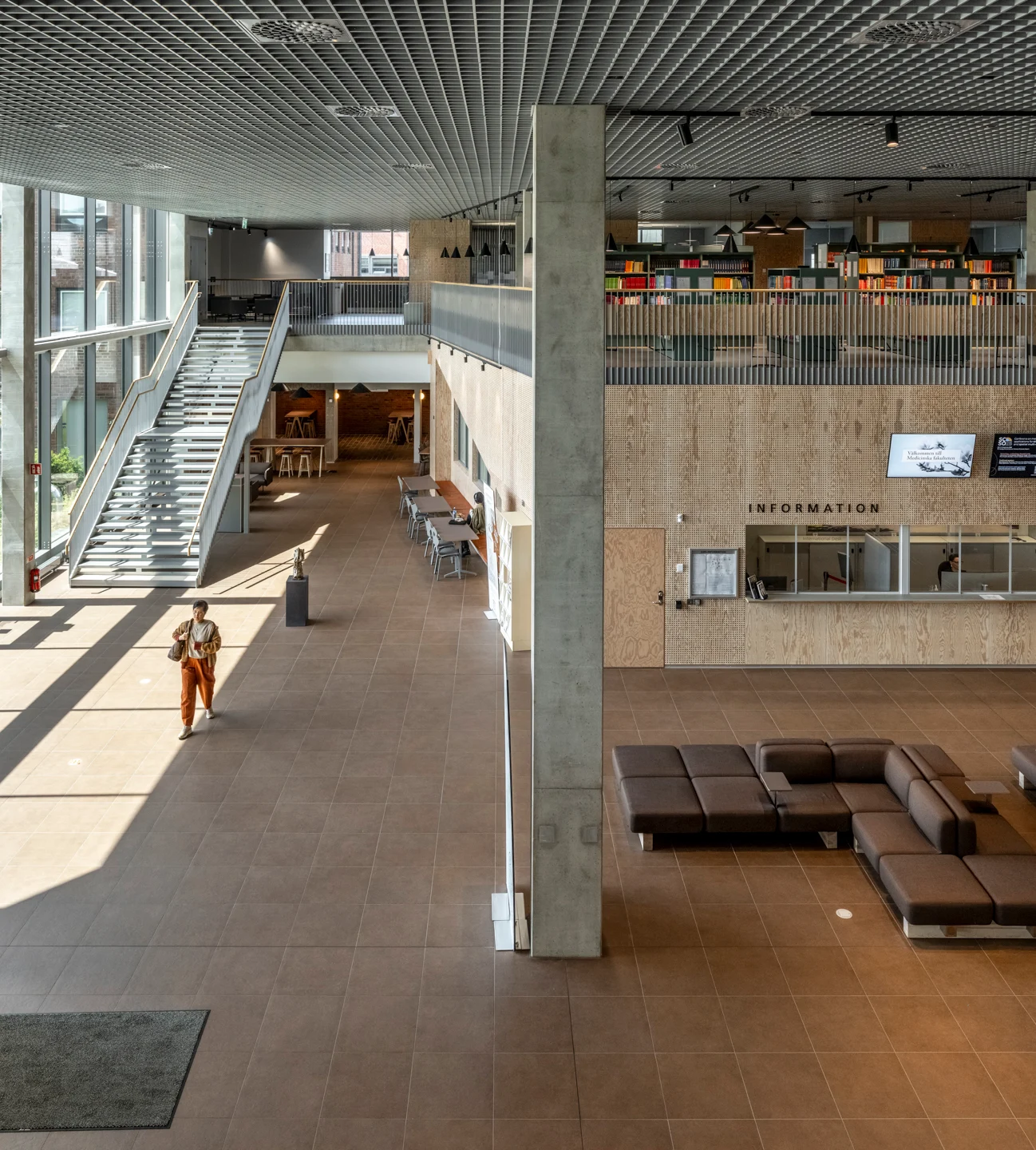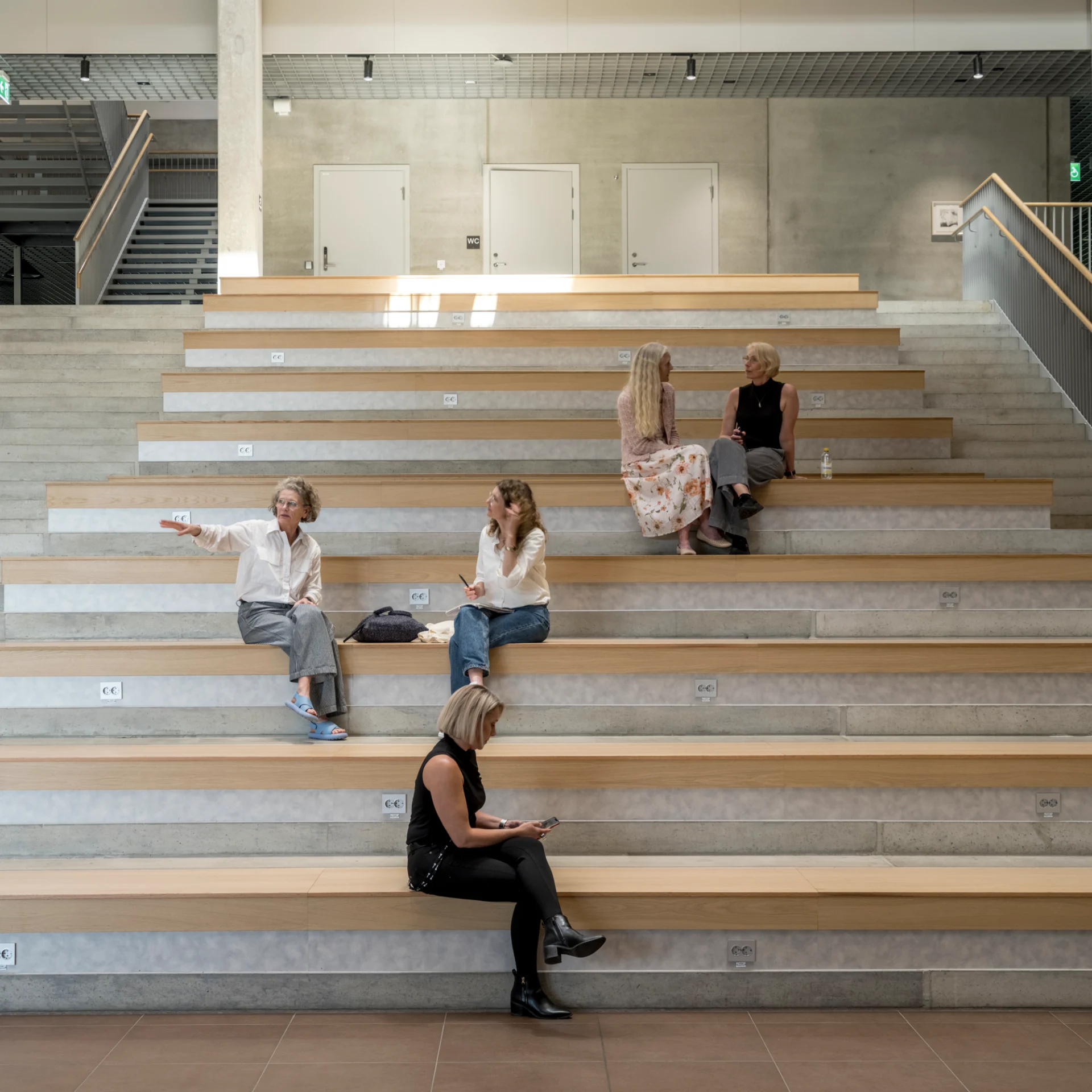 At Forum Medicum’s heart is an indoor plaza — publicly accessible, visually open to the street, and home to a café, restaurant, and informal areas for connection. The blurred border between indoor and outdoor spaces creates one connected urban forum, making room for exhibitions and informal learning while remaining open to the people of the city. The ground floor belongs as much to Lund as it does to the university.